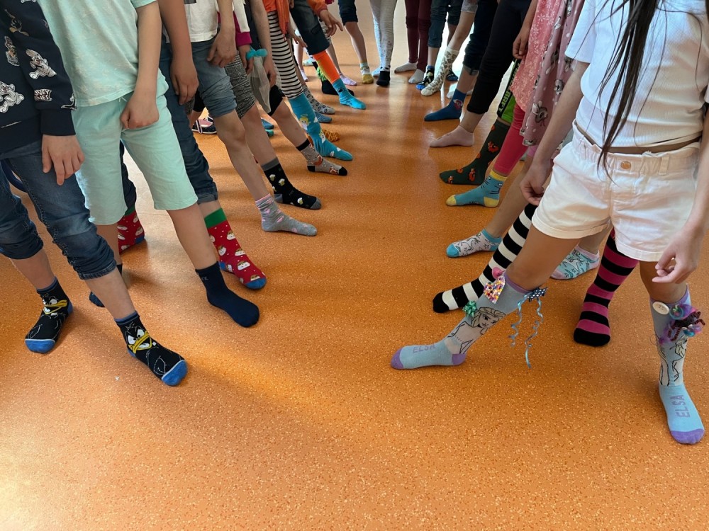 Na dnešní den pro nás školní parlament připravil akci Ponožkový den. Šlo o to, aby každý přišel do školy v co nejbláznivějších ponožkách. Zapojili jsme se skoro všichni, v pracovních činnostech jsme si dokonce sami cool crazy ponožky navrhli. Děkujeme školnímu parlamentu za nápad!