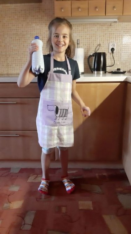 - Nalej do PET lahve trochu smetany (čím více, tím déle to bude trvat).