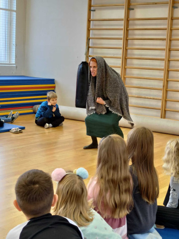 Navštívilo nás divadlo DIP se třemi příběhy. Paní principálka dětem vyprávěla o vodní víle a o tom, jak se zrodila zima, proč bychom měli o Vánocích myslet na druhé, a o vánoční hvězdě, kterou nosíme všichni v srdci. Děti zpívaly a aktivně doprovázely vánoční příběhy.