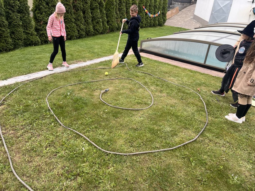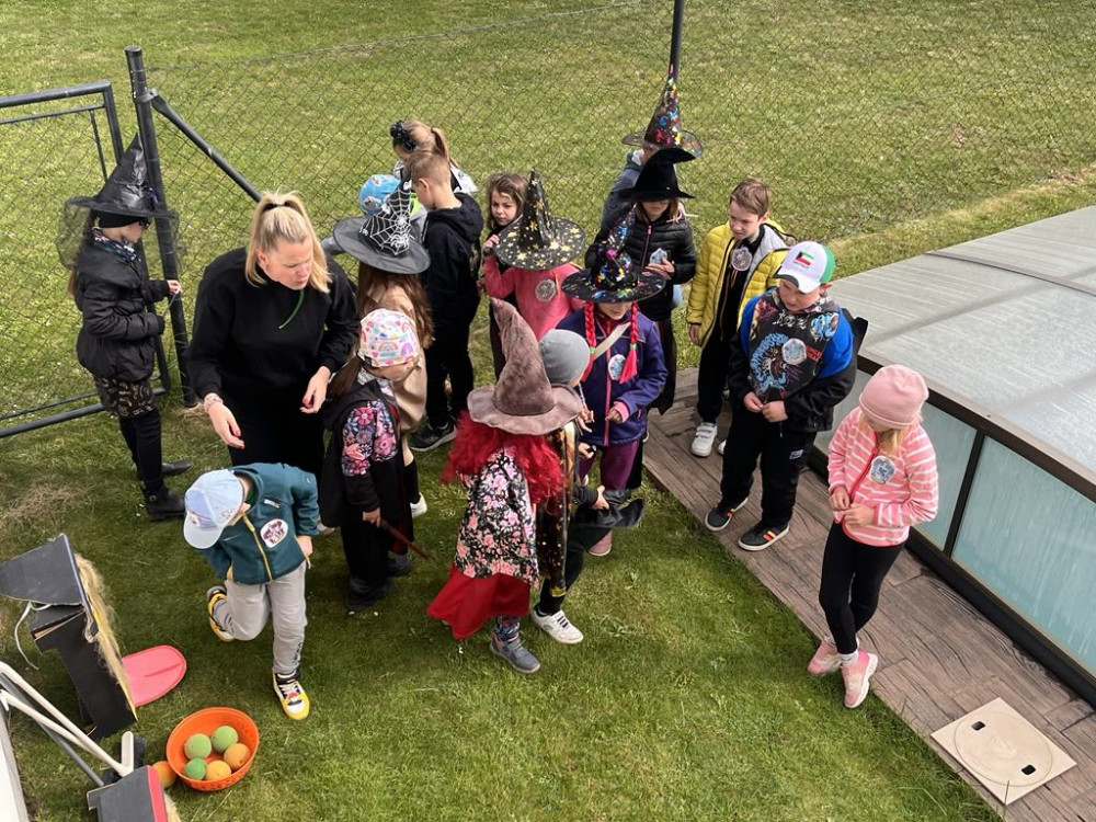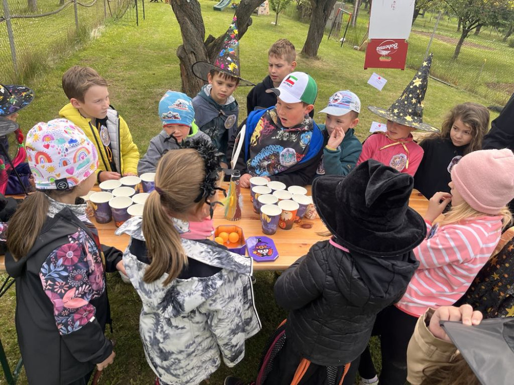 Dnes jsme se vydali na knihostezku po stopách Harryho Pottera. Připravili jsme čarodějné hůlky a v kostýmech a kloboucích jsme z modřického nástupiště devět a třičtvrtě na Komenského zavítali rovnou do Bradavic. Tam na nás čekala sova Hedvika i profesorka Minerva McGonagallová. Moudrý klobouk nás rozřadil do jednotlivých kolejích. Plnili jsme zapeklité úkoly v barvách Nebelvíru, Havraspáru, Mrzimoru nebo Zmijomezu. Zahráli jsme si i famfrpál, kouzelnický volejbal, namíchali kouzelný lektvar. Každý z kouzelníků byl odměněn klíčem od tajemné komnaty. Děkujeme profesorce Minervě McGonagallové za nádherný program!