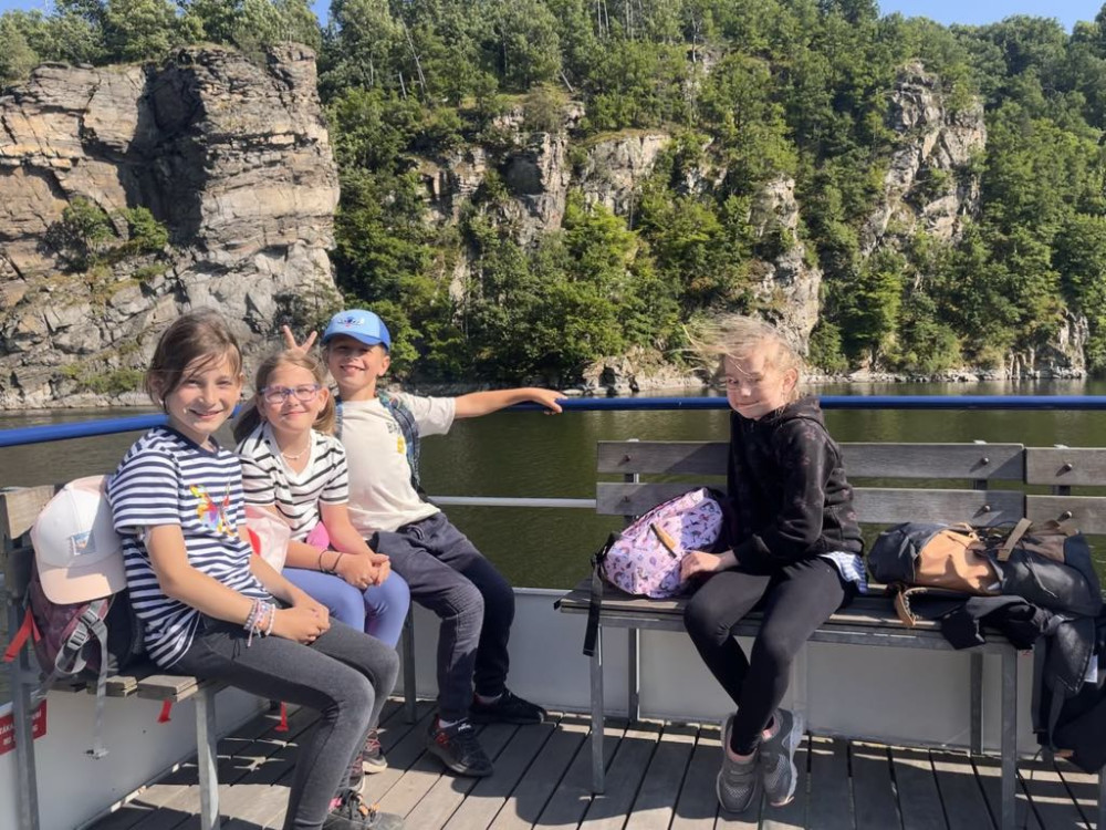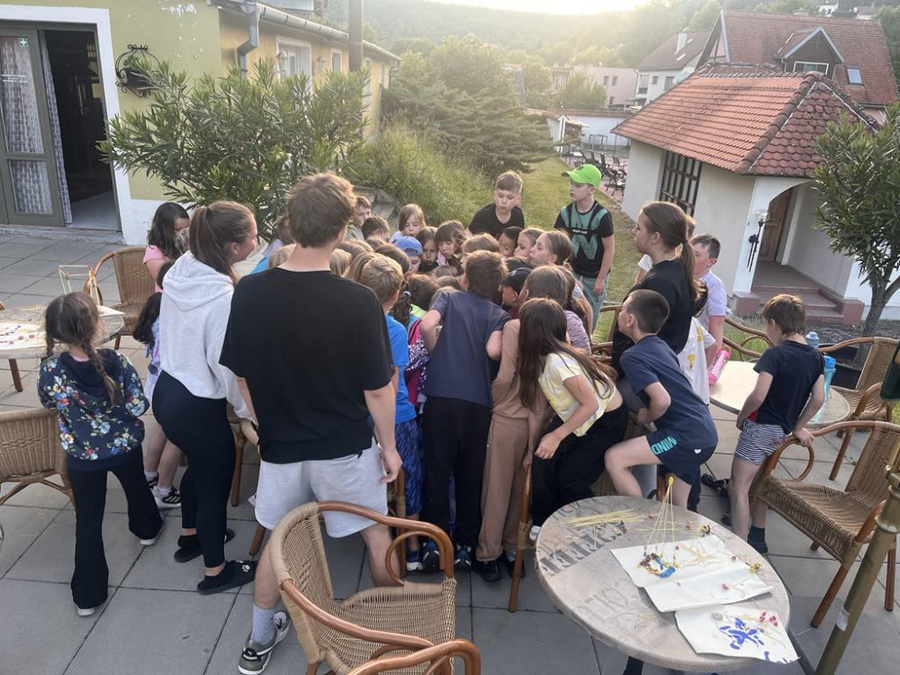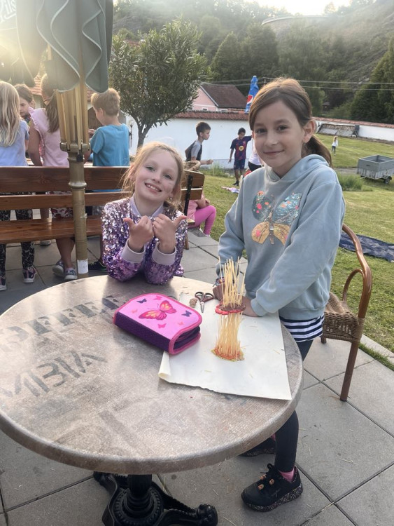 Stále plujeme na palubě jako piráti - tentokrát doslova, protože jsme se po zdolání Granátové stezky obsahující nádherný výhled na zámek i na přehradu, nalodili na Poseidona. Po vyhlídkové plavbě, kdy jsme měli celou loď jen pro sebe, a po návratu na základnu, jsme měli za úkol postavit co nejvyšší věž, která nesmí spadnout. To se všem skupinám podařilo, jelikož následovala tzv. foukací zkouška - a stavby opravdu vydržely :-). A teď už jsme zvědaví, co nám přinese čtvrtek!
