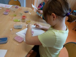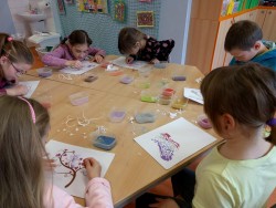 Dnes jsme měli možnost zopakovat si výtvarnou techniku, kterou jsme si vyzkoušeli při vánočním tvořeni - pískování, vlastně takové omalovávání obrázku pomocí barevných písků.Moc jsme se těšili, protože nás tato výtvarná technika baví.Tvořili jsme se zaujetím a obrázky se nám moc povedly.