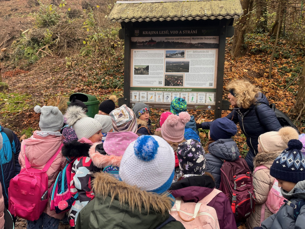 Protože se blíží stoleté výročí založení tradice Vánočního stromu v republice, vydali jsme se do míst, kde to všechno začalo. Po příjezdu do Bílovic nad Svitavou jsme se rozdělili do skupin. Každá skupina dostala mapu s vyznačenou trasou a mohli jsme vyrazit. Po cestě jsme pozorovali, zda jsou objekty, které vidíme, skutečně na mapě vyznačeny. Naučili jsme se, jak je značena hájenka, studánka i památník. Objevili jsme místo, kde spisovatel a novinář Rudolf Těsnohlídek při procházce lesem našel s kamarádem malou opuštěnou holčičku. Vyslechli jsme si její příběh a vydali se ještě po zelené turistické značce hledat další místo - to, kde byl skácen první vánoční strom. Po cestě zpět nechyběly hry a běhání, po kterých už se všichni těšili na zpáteční cestu vlakem. Děkujeme všem, kteří nás na výpravu doprovodili!