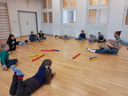 Obrátili jsme se k vlastnímu tělu jako rytmickému nástroji a pomocí tleskání, luskání, podupávání a řadě dalších zvuků jsme vytvářeli hudbu. Osvojili jsme si základní techniky Body percussion. Vytvářeli jsme rytmy pomocí zábavných her s důrazem na rozvoj paměti, koordinace, smyslu pro rytmus, komunikace. Zahráli jsme na ozvučné trubky Boom whackers. V neposlední řadě jsme si poslechli ukázku hry na Handpan neboli mystické hudební UFO.