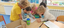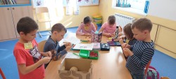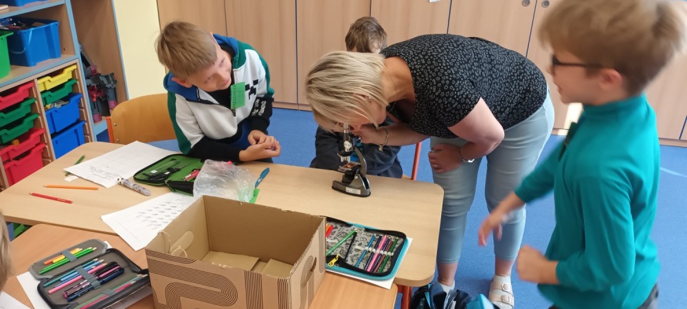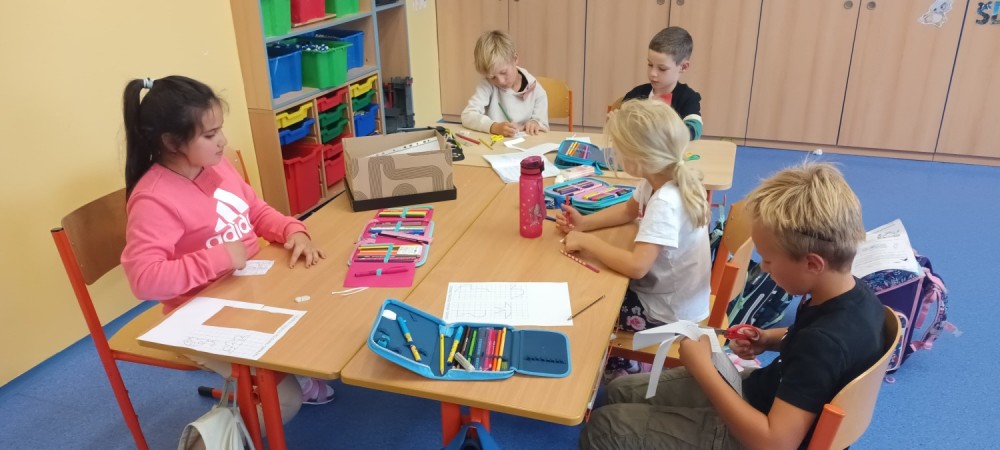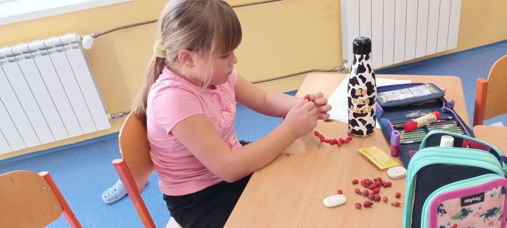 První centra aktivit v tomto školním roce byly na téma Les. V centru čtení a psaní měli za úkol roztřídit pravdivé a nepravdivé věty o lese. Společně psali životabáseň na téma Podzim. Centrum matematiky bylo zaměřené na práci se zvířátky Dědy Lesoně a překreslování obrázků podle osové souměrnosti. V centru pokusů a objevů jsme zkoumali šípek pod mikroskopem a lupou. Posledním centrem byl ateliér, kde jsme vyráběli srdce ze šípků. Šípky jsme si společně o den dříve šli nasbírat. Toto centrum stálo děti pár škrábanců, zapíchnutý trn v prstu a drátem propíchané prsty, ale stálo to za to.