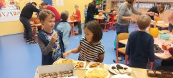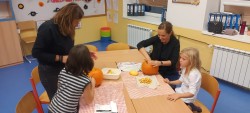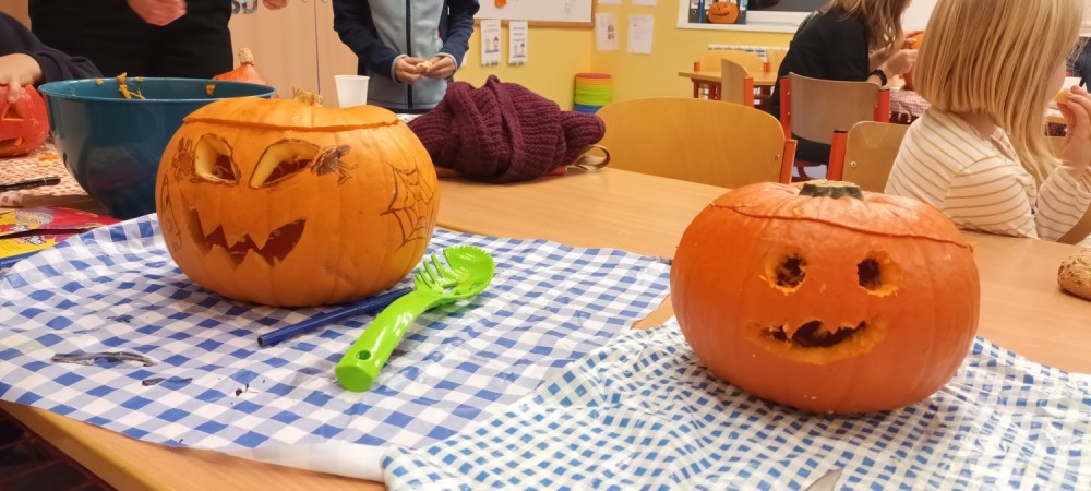 30. 10. 2023 Letošní příprava na Halloween probíhala ve formě odpoledních dílen, kde rodiče a děti společně dlabaly, vyřezávaly dýně. Děti spíše dlabaly a rodiče řezaly. Kreativita rodičů neznala mezí. K práci jsme měli i drobné občerstvení. 18 / 12 / 2023 MPa