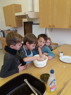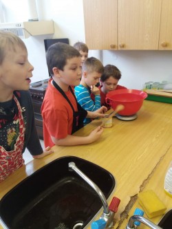 Ve školní kuchyni jsme společně připravili nepečené cukroví - čokoládové košíčky a kokosové kuličky. Byla to taková dobrota, že jsme během příprav museli neustále ochutnávat a nejoblíbenějším slovem bylo "mňam". Naštěstí jsme zvládli donést i něco na ochutnání domů pro rodinu.