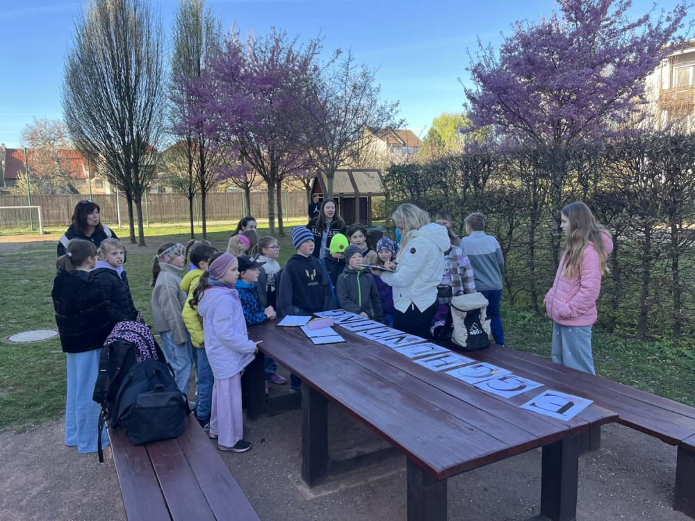 Návrat do lavic po Velikonocích nám letos zpříjemnili starší spolužáci z 2. stupně. Připravili si pro nás totiž na školní zahradě napínavou běhací hru Eggs Hunting! Hledání vajíček a plnění úkolů na čerstvém vzduchu bylo přesně to, co jsme po svátcích potřebovali. Školní zahrada ožila smíchem, týmovou spoluprací a pořádným nasazením všech hledačů. Moc děkujeme 2. stupni za originální přivítání v novém týdnu. Byl to parádní zážitek!