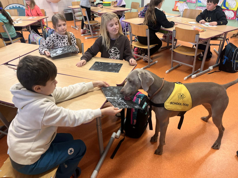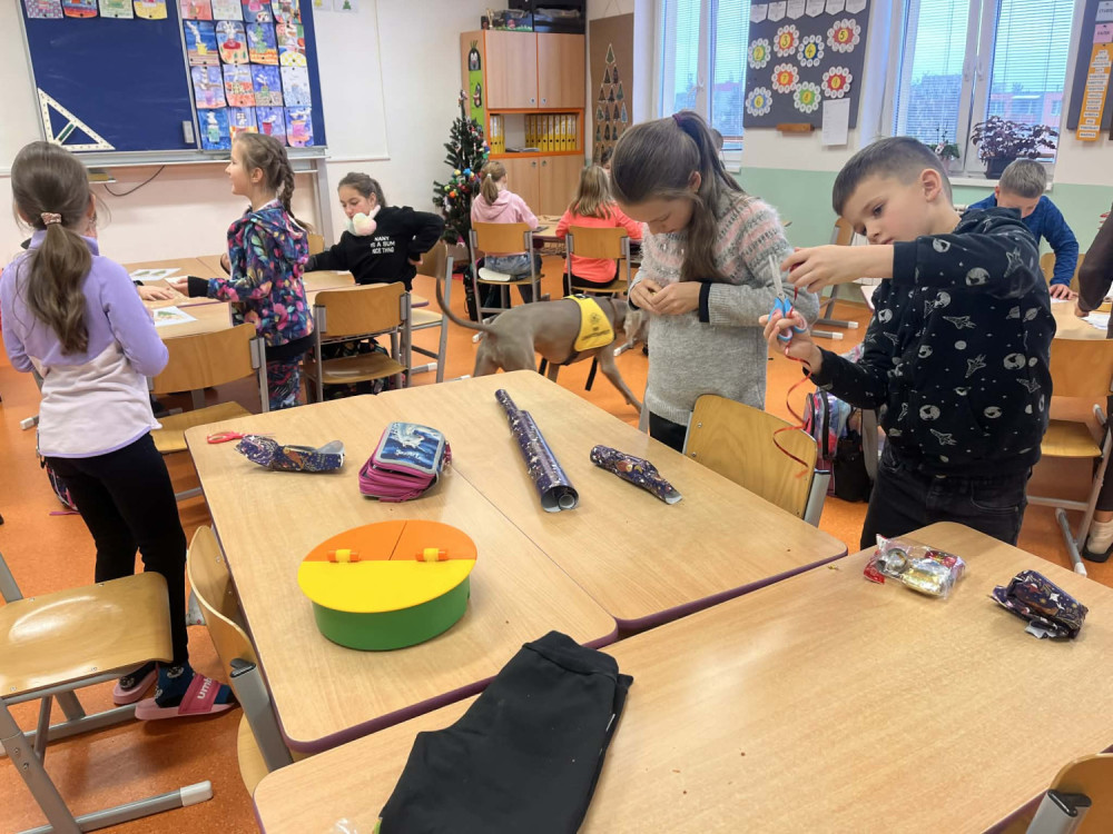 Před Vánoci naši třídu navštívila paní psycholožka se svým canisterapeutickým pejskem a připravila pro děti program plný zajímavých stanovišť a úkolů.