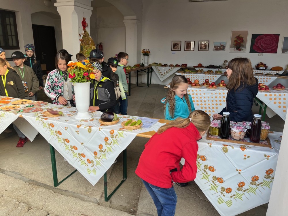Dnes jsme zhlédli samé pěkné ovoce a zeleninu na výstavě modřických zahrádkářů. Až se nám sbíhaly sliny! Některé výrůstky byly již zpracované například do marmelád či sirupů, některé do krásných podzimních aranžmá. Výstava se nám moc líbila!