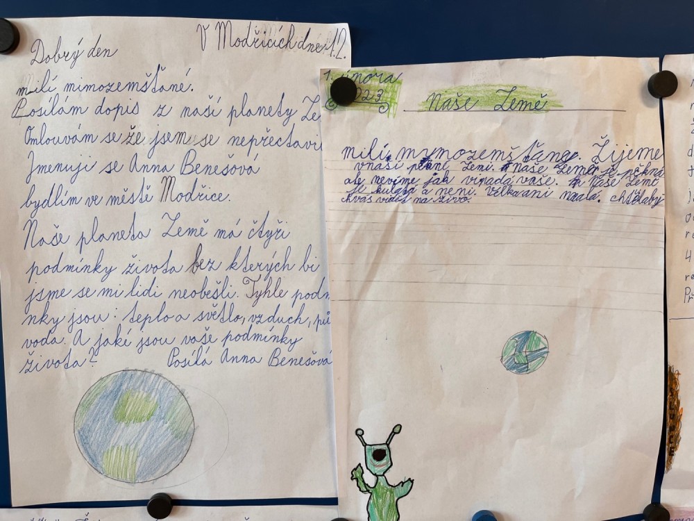 6. 2. 2023 V rámci únorových center aktivit měli žáci třetích tříd za úkol napsat dopis mimozemšťanům. Sice ještě neznáme všechna pravidla pravopisu, ale jinak se nám dopisy docela povedly :-). 21 / 2 / 2023 SMa