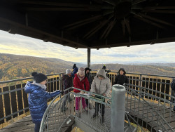 S dětmi jsme se tedy společně vydali vlakem do Bílovic nad Svitavou, prošli jsme trasu okolo Myslivny lišky Bystroušky, studánky Leoše Janáčka, přes památník Lidušky až na rozhlednu "U Lidušky". Když jsme zdolali všech 131 schodů, naskytl se nám krásný výhled na "Moravské Švýcarsko", tedy Bílovice nad Svitavou, bílovické a babické okolní lesy, Brno nebo vysílač Hády.