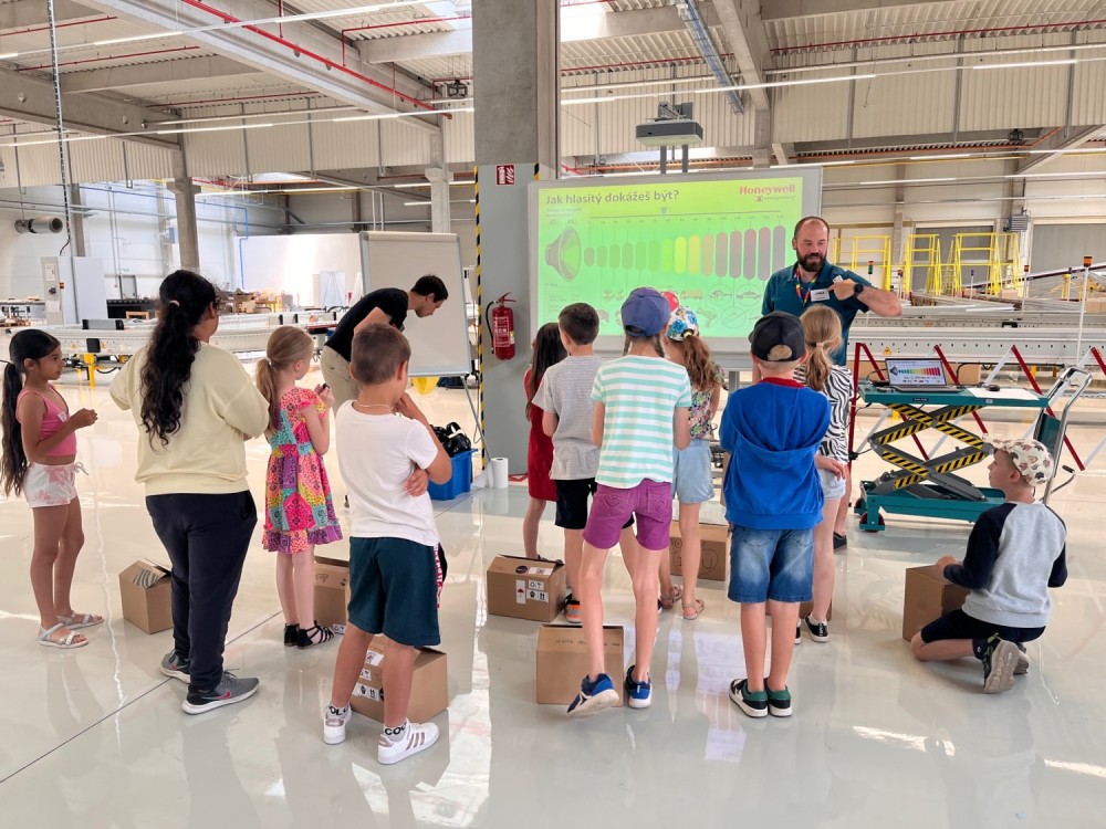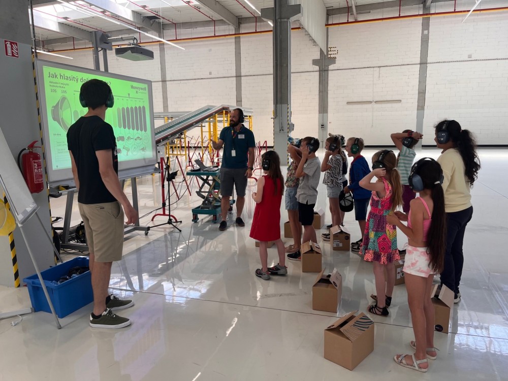 Předposlední školní týden jsme se vydali na exkurzi do Honeywellu - Věda a technika je všude kolem nás. Nahlédli jsme do světa průmyslového výzkumu a vývoje, vyzkoušeli jsme si práci inženýrů a inženýrek, seznámili jsme se s tím, jak fungují přírodní vědy v praxi. Nejprve jsme si prohlédli drony různých velikostí a hmotnosti, měli jsme možnost si pomocí speciálních brýlí vyzkoušet pohled z dronu. Potom jsme se proměnili v kapitána letu a na leteckém stimulátoru řídili dron po městě Brně. Vyrobili jsme si svoje letadélko z balzy, které jsme se snažili vyvážit tak, aby mělo co nejdelší dolet. Nakonec jsme zavítali do obrovské výrobní haly, kde jsme na přepravníku měli za úkol poslat balíček. Zjistili jsem tak, jak fungují balíkové služby. Nakonec jsme se pokusili udělat co největší hluk za pomocí píšťalky i bez ní. Podařilo se nám vytvořit hladinu hluku 108 dB - skoro jako ve škole o přestávce :-) :-). (V Honeywellu je zaměstnanec, který se přímo zabývá zkoumáním hladiny hluku.)