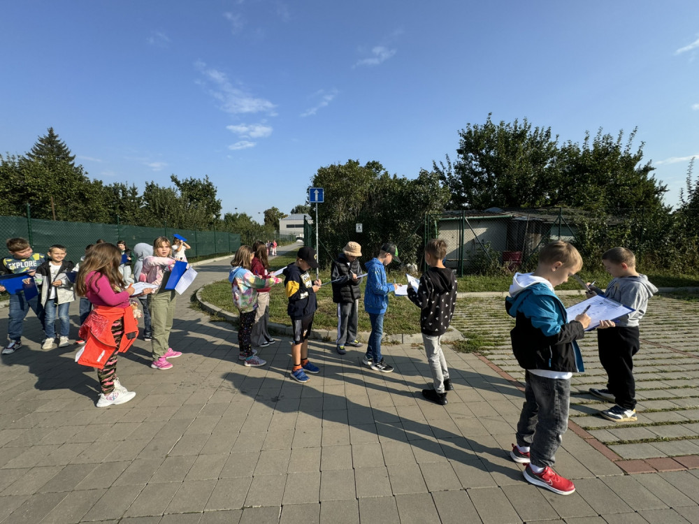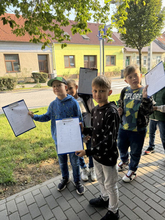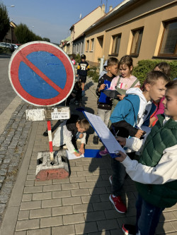 Ve čtvrtek jsme využili jeden z posledních teplých dní a společně s dětmi jsme se vydali po stopách dopravních značek.