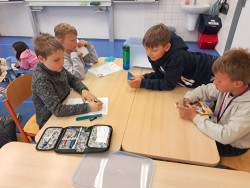 Inspirací pro naše další centra aktivit byl náš školní mazlíček - křeček Piškotka. Zároveň byla hlavní hvězdou center pokusů a objevů, kde děti stavěly a vymýšlely různá bludiště, kterými Piškotka musela prolézat. V centru matematiky plánovali za pomocí Beebotů den křečka a naplňovali jeho potřeby. V centru ateliér kreslili reálného křečka podle video návodu. V centru čtení pracovali s knihou Křeček a vyhledávali informace, jak o křečka správně pečovat. V centru psaní psali příběh o křečkovi a velmi jsme se u toho nasmáli.
