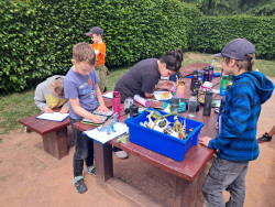 Děti si vybraly přírodniny nebo malé zvířecí figurky, které postavily na papír tak, aby na ně dopadalo slunce. Potom obkreslovaly jejich stíny, které světlo vykreslilo na papíře. Byl to skvělý způsob, jak si všimnout, jak světlo a stín fungují, jak se během chvíle mění délka a tvar stínů – a jak vzniká obraz bez potřeby barev.