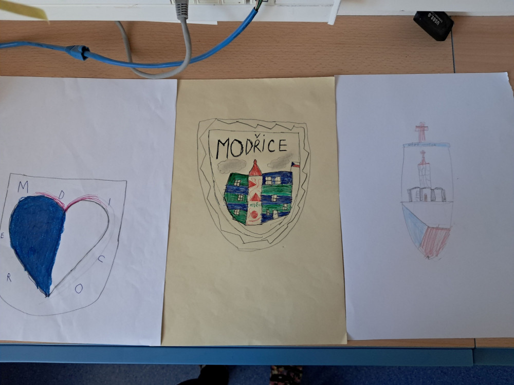 Naše obec Modřice - místo, kde žijeme. Jak moc ho dobře známe? O tom jsme se přesvědčili v centrech aktivit. V centru matematiky jsme pracovali s tabletem a Zpravodajem. Děti hledaly podzimní akce a zapisovaly je do vlastně vytvořené tabulky. V centru čtení přemýšleli, jak vzniklo jméno Modřice a svou hypotézu porovnali s pravdou. Nejčastěji si mysleli, že název je spojený s modřínem nebo modrou barvou. K dispozici měli knihu o Modřicích, kde si prohlíželi fotografie a srovnávali minulost a přítomnost. V centru psaní vymýšleli života báseň o Modřicích. Vzniklo spoustu krásným textů. V centru ateliér navrhovali nový erb a poté ve třídě hlasovali o vítězi. Třeba se nový erb zalíbí i jiným. V posledním centru, centru objevů a pokusů, dostali mapu a tablet. Měli za úkol naplánovat si cestu po významných místech a vyfotit je. Na fotkách se objevil i náš třídní maskot Jiskra. A jedna zajímavost na konec - věděli jste, že Modřice měli "hrad"? My už to víme.