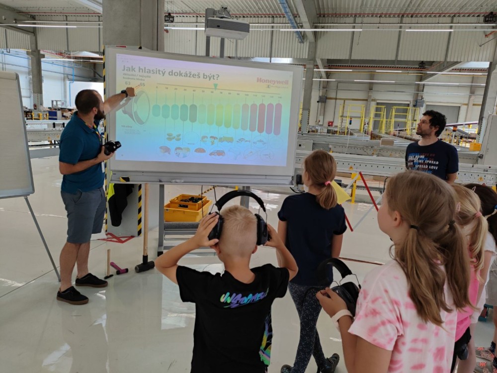 Další skupinka se dozvěděla zajímavosti o letadlech a různé součásti, které fa Honeywell vyrábí. Děti se mohly ptát přímo odborníků z oboru na cokoli, co je zajímalo. Zjistili jsme, že se snaží vyrábět prostředí, ve kterém se eliminuje hluk a zkusili si, jak moc hluční dokážeme být (to víme, že dost :-). Vše jim bylo s velkou trpělivostí vysvětlováno i přesto, že jsou to velice odborné věci. Náš průvodce Miky nás naučil to, že nejdůležitější v životě je se ptát, protože jen tak se člověk dozví to, co chce a ne to, co mu ostatní chtějí říct....Byl to bezva zážitek na konec školního roku.