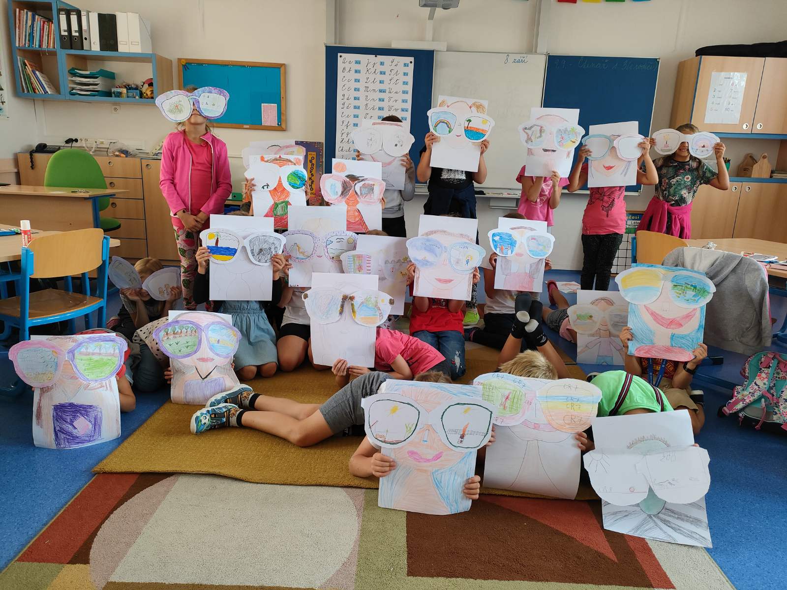 První týden školy za námi, učebnice rozdané, sešity nachystané a můžeme se začít pořádně učit! Ještě poslední vzpomínka na prázdniny v našich brýlích a kvíz: Kdo do této třídy vlastně patří? Můžete se hledat, třeťáci :-).