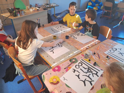 Na závěr workshopu lektor předvedl své mistrovství, když znovu napsal slovo „kůň“, tentokrát s precizností a lehkostí zkušeného kaligrafa. Vrcholem pak byla ukázka obřích štětců, které se používají pro monumentální kaligrafické práce, což v žácích vyvolalo úžas a respekt k tomuto umění.