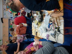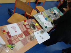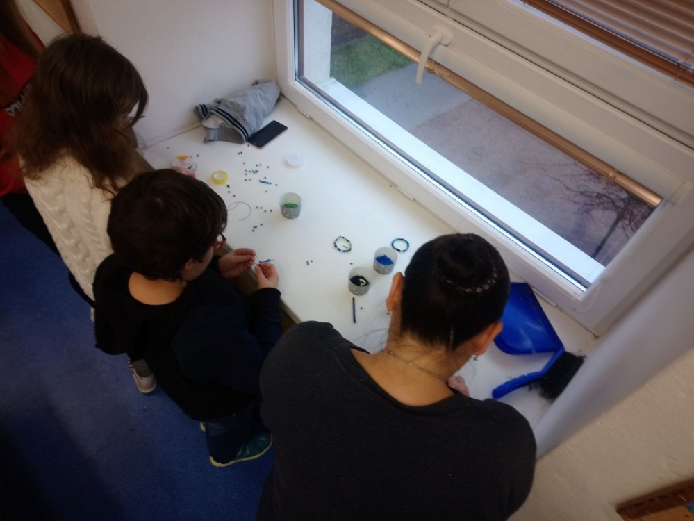 Některé z rodičů jsem seznámila s tím, jak si ze starých kalendářů vytvořit vlastní originální tašku na dárky a také jsme vyrobili zásobu náramků přátelství na jarmarkový prodej.