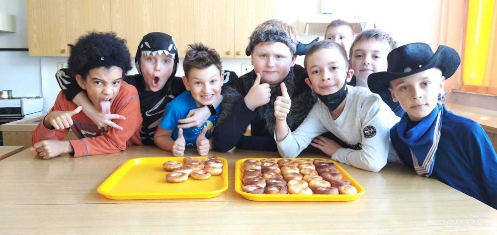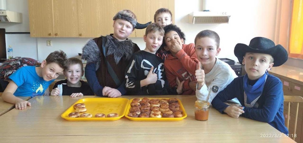 Děti ze 4.A si připomněly tradiční lidovou veselici - masopust. Některé děti udivovaly svými maskami kolemjdoucí již cestou do školy. Ve škole se představily spolužákům a zaskotačily si při zábavných pohybových aktivitách. Na závěr dopoledne si vlastnoručně připravily oblíbenou masopustní pochoutku - smažené koblížky.
