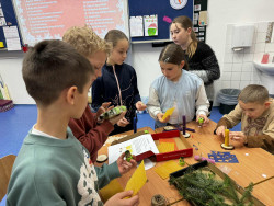 V naší třídě se na chvíli zastavil čas a zavládla pravá předvánoční pohoda. Proběhly totiž Vánoční dílničky, při kterých se stříhalo, lepilo, zdobilo, povídalo a hlavně hodně usmívalo. Na děti čekalo pět tvořivých stanovišť – baňka z inkoustu, svíčka a svícnínek, skřítci ze šišek, ozdoby z kolíčků a zdobení baněk korálky.