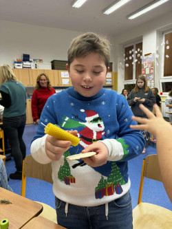 Velkou pochvalu si zaslouží děti, které si samy připravily hned tři stanoviště a s radostí pomáhaly svým spolužákům. Za zvuků vánočních koled jsme tvořili, mlsali dobroty od rodičů a užívali si společné chvíle plné klidu a dobré nálady.