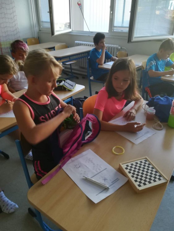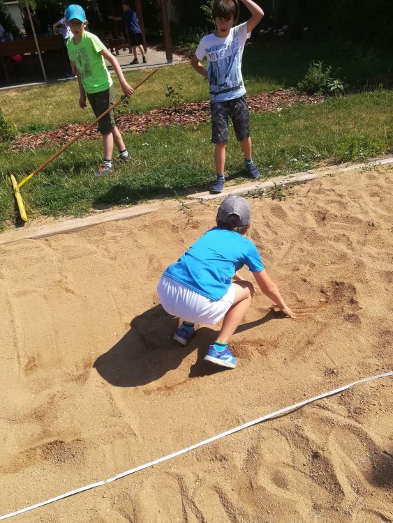 Na dnešní den byl naplánován Sportovně-branný den. V prvních dvou hodinách jsme plnili zadané úkoly týkající se branné výchovy a správného chování při mimořádných událostech. V následujícím čase jsme soutěžili ve sportovních disciplínách. Vyzkoušeli jsme si skok do dálky, běh na čas, hod do dálky, skákání přes švihadlo na daný limit. I přes velmi vysoké teploty jsme všichni všechno zvládli a těšíme se na zítřek na vyhlášení vítězů.