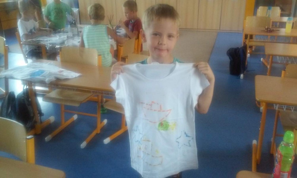 27. 6. 2019 Děti z přípravné třídy si vytvořily letní tričko. Pomocí barev na textil si pomalovaly tričko dle vlastní fantazie. Děti jsou šikulky, vznikla úžasná umělecká díla. 27 / 6 / 2019 VS