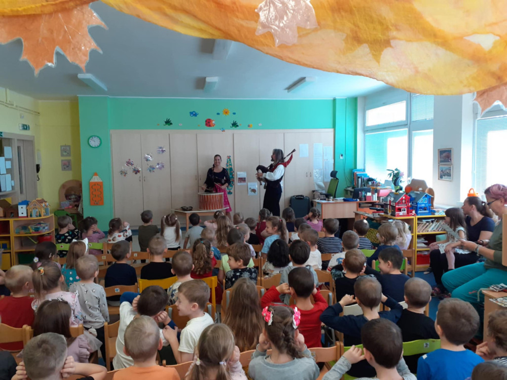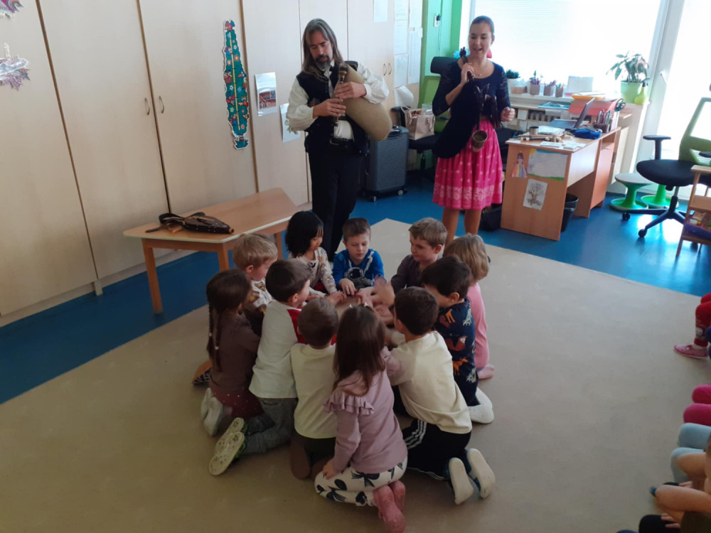 S dětmi jsme se zúčastnili kulturní akce v modřické MŠ. Celým programem nás provedli Ondřej a Lucie Tryhuci a formou výchovného koncertu dětem představili zajímavý hudební nástroj dudy. S kozlíkem, jak se říkalo českým dudám, se děti podívaly na dudy z celého světa a mohly jejich tvar i zvuk porovnat s českým kozlíkem. Dětem byly představeny dudy z Chorvatska, Španělska, Slovenska i z Brna. Společně s dudami si děti vyzkoušely hru na buben i doprovod tleskáním a dupáním. Všichni jsme poznávali a zpívali lidové písničky i písničky z pohádek a za správné odpovědi dostali autorské omalovánky.