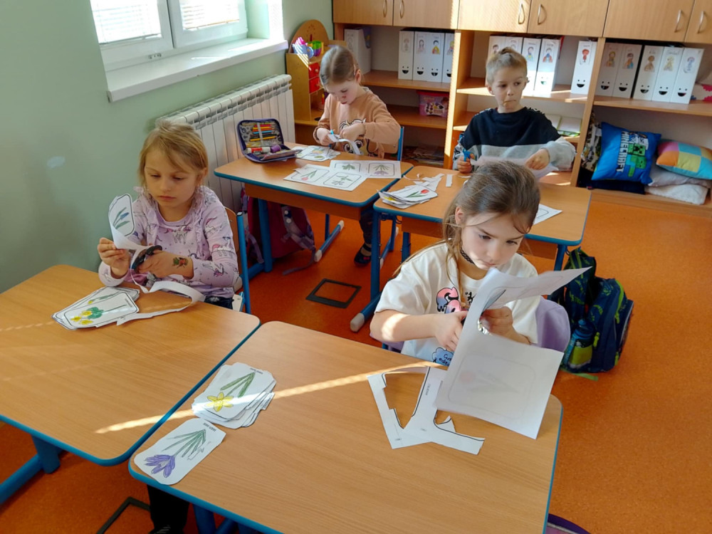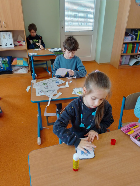 Za brány školy jsme se jindy vydali poznávat jarní květiny, a to s vlastnoručně vyrobenými herbáři. U jezírka nás často zdraví páreček divokých kachen, které jsou také součástí přírody, jejíž změny v jednotlivých ročních obdobích s dětmi chodíme pozorovat.