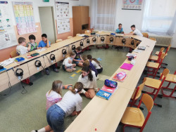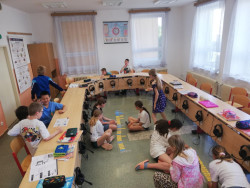 Dnes byla naše poslední letošní angličtina, a tak jsme si ji užili, jak jinak než hrami. Mohli jsme si vybrat z různých anglických her a aktivit: někdo zvolil anglické "člověče nezlob se", jiné skupinky skládaly anglicko-česká slova. Angličtina není jen nudné učení slovíček, i hrami a aktivitami se zdokonalujeme!