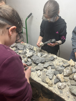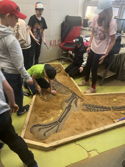 Po obědě jsme se přesunuli do Triloparku, kde jsme se ponořili do pravěkého světa. Děti nejprve vyslechly poutavou přednášku o vzniku života na Zemi a následně si samy vyzkoušely práci paleontologa. Měly možnost vytvořit si odlitky trilobitů, pracovat se sbíječkou, nebo se pustit do opatrného odkrývání "dávných kostí". Všichni byli nadšení z možnosti „šahat na věci“, o kterých se jinak jen učí.