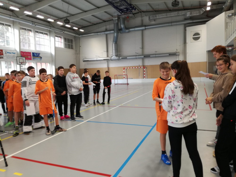 2. listopadu se chlapci z šestých a sedmých tříd naší školy zúčastnili okrskového kola florbalu základních škol v Pohořelicích. Ze třídy VII.A se zúčastnili Tomáš Führich, Marek Ošlejšek a Martin Fic, ze VII.B Šimon Mandelík, Lukáš Koutný, Lukáš Kozohorský, Adam Haxa a Tobias Bártů, ze VI.A Filip Haluška a Adam Smrček a ze VI.B Ondřej Slezák.