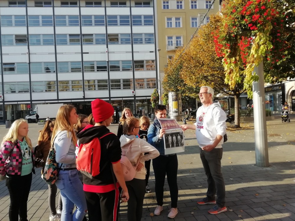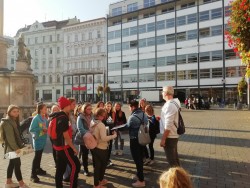 Ve čtvrtek jsme se vydali na tématickou procházku do Brna. Průvodce nám dělal Martin Foretník - herec z Mahenova divadla. Prošli jsme si místa kde byl dříve Tuzex, dal nám bony, mapu s názvy ulic z té doby. Ukázal nám také mnoho fotografií a zajímavých míst. Zavedl nás do kina Scala, které se od 80. let skoro nezměnilo. Vycházku jsme si velmi užili a pan průvodce byl velmi příjemný.