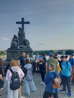 Ve dnech 9. - 11. června jsme s žáky 9. B navštívili naše hlavní město. Po příjezdu jsme vyrazili na Pražský hrad, kde nás zaujala katedrála sv. Víta, ale také Zlatá ulička a zahrady v areálu hradu. Naší pozornosti neunikl ani Karlův most, na který jsme se posléze vydali. Po několika zastaveních na Karlově mostu, naše kroky směřovaly ke Staroměstskému náměstí, kde jsme o 2 minuty nestihli odbíjení orloje. Večer jsme se metrem přemístili na naše ubytování na Pankráci.