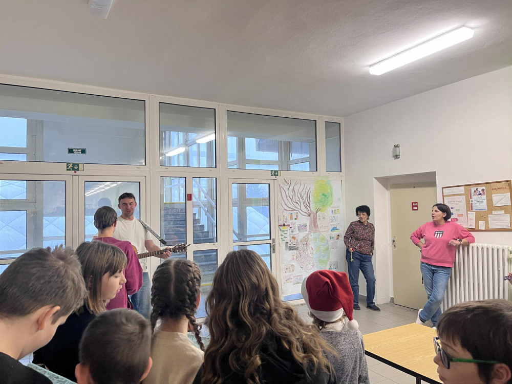 Poslední školní den před vánočními prázdninami u nás přinesl jedno milé překvapení. Navštívil nás náš milý bývalý kolega i s kytarou a kombem a postaral se o kouzelný a velmi příjemný závěr předvánočního času ve škole.