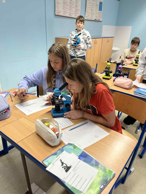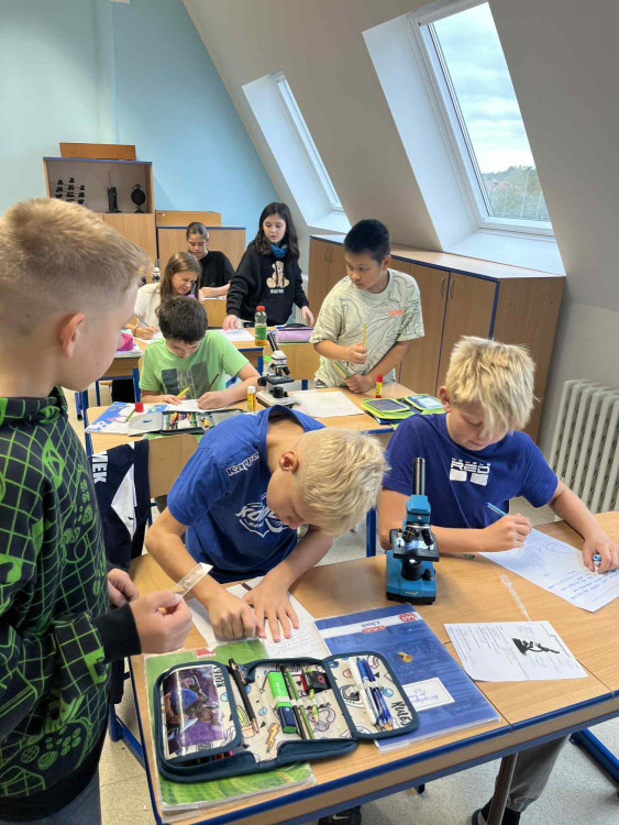 V pátek jsme měli v přírodopisu velký „první krok“: poprvé jsme mikroskopovali. Žáci 6.B se nejdřív seznámili se stavbou a bezpečnou obsluhou mikroskopu, připomněli si krátce historii objevu mikrosvěta a pak se pustili do praxe – jak správně připravit nativní preparát.