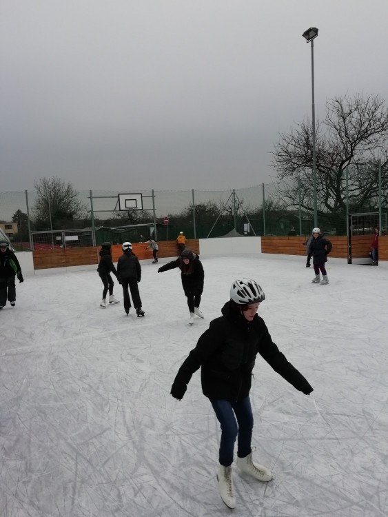 Ve čtvrtek 16.12. třída 6. B v rámci hodiny tělesné výchovy byla bruslit na ledové ploše vedle sportovní haly. Žáci si vyzkoušeli různé cviky na bruslích, zahráli si "rybičky" a někteří si také zkusili přihrávky hokejkou. Žáky bruslení velmi bavilo a doufají, že půjdeme bruslit znovu.