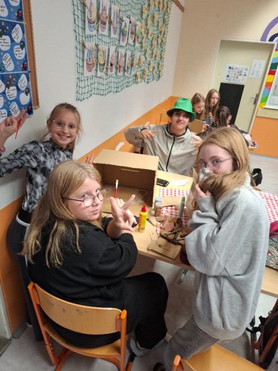 Když byly krabice hotové, přišla na řadu prezentace. Skupiny představily nejen svůj model, ale i to, jak se jim spolupracovalo a co se během práce naučily. 👥🎤