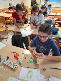 Pak přišla na řadu kreativita: z plastelíny jsme modelovali různé typy buněk a pečlivě popisovali jednotlivé organely 🎨. Výsledky byly barevné, nápadité a hlavně přesné!