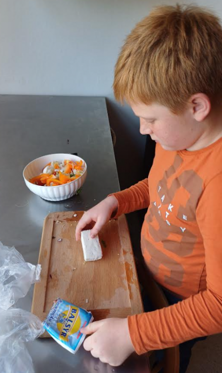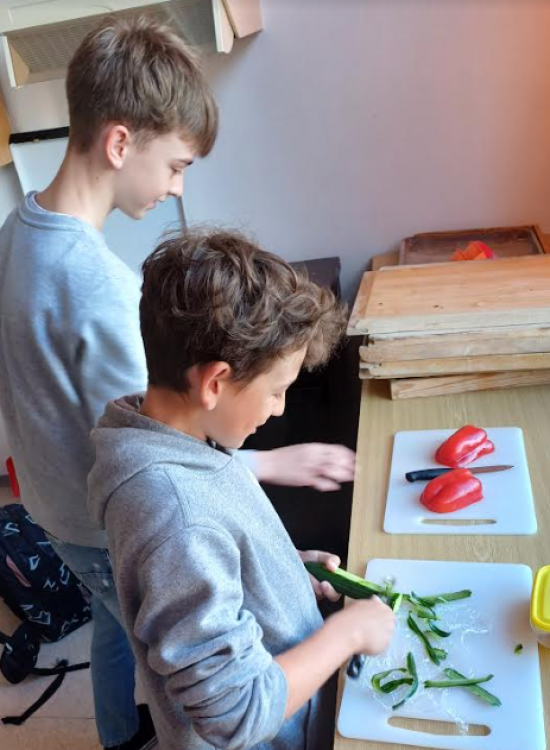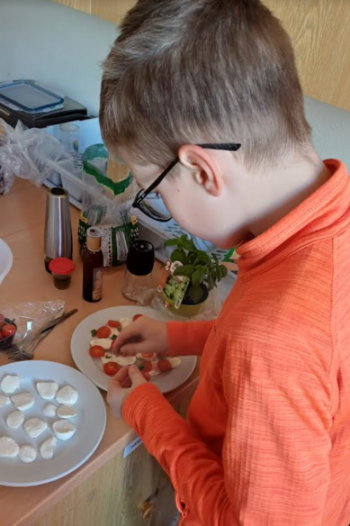 Se 6.A jsme připravovali lahodné saláty. Bylo mnoho různých variant, ale u dětí vedly jednoznačně ty zeleninové. I když jsme se tu setkali i se salátem z ovoce, dalšími "dobrotami" byl i balkánský salát, okurkový salát s recepturou z Korei, anebo jednoduchý italský salát pocházející z Kampánie - caprese.