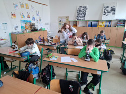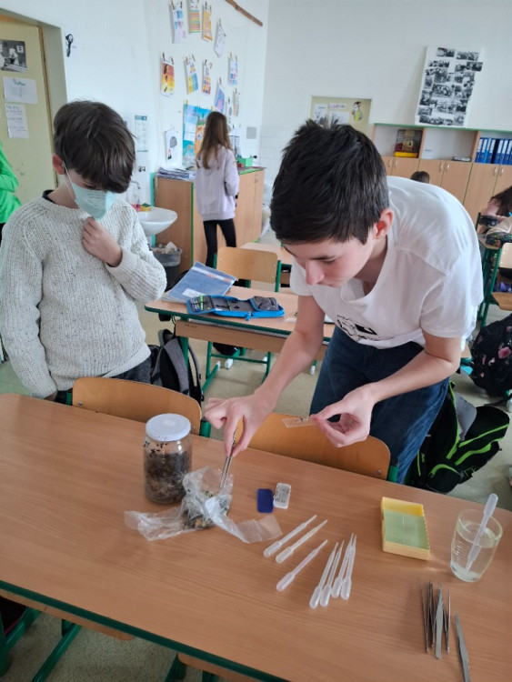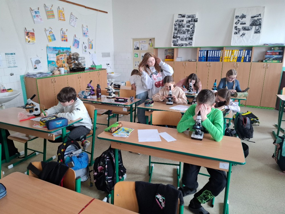 Dále jsme se věnovali pozorování plísní – zjišťovali jsme, co jim pomáhá růst, kde se nejčastěji objevují a jak vypadají pod mikroskopem 🔬. I když na první pohled nevypadají moc vábně, zjistili jsme, že jsou velmi zajímavé a mají v přírodě svou důležitou roli.