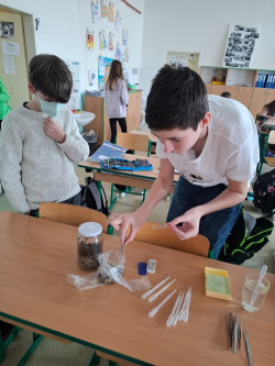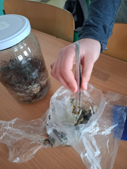 Také jsme se podívali pod povrch půdy. 🌍 Pomocí jednoduchých pastí jsme zkoumali půdní živočichy – objevili jsme spoustu malých, nenápadných tvorů, kteří mají velký význam pro zdraví půdy. Nejvíce nás zaujaly žížaly. Mohli jsme tak sledovat, jak přeměňují zbytky na úrodnou půdu – skuteční mistři kompostování!