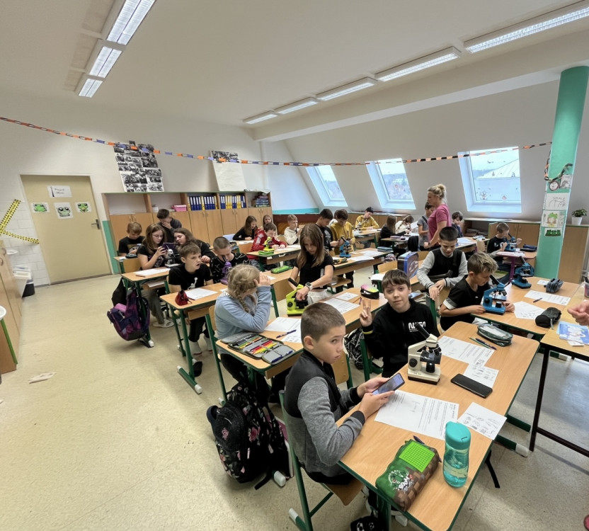 Dnes proběhl ve třídě 6.B projektový den s názvem Tajemství buňky, kde si žáci vyzkoušeli zajímavé aktivity zaměřené na poznání světa buněk. Program začal mikroskopováním senného nálevu, kde měli žáci příležitost poprvé pozorovat mikroskopické organismy a detaily buněčné struktury.