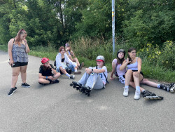 V úterý se naše třída umístila na krásném druhém místě - velká gratulace a radost! Následující program byl čistě v rukou žáků, a tak jsme ve středu vyrazili pěšky do Olympie. První část dne jsme strávili na hřišti, někteří žáci využili prostředí k workoutu, jiní zavzpomínali na rané dětství na houpačkách a prolézačkách, jiní se sebou měli kolečkové brusle nebo skateboard a čas strávili aktivním sportem. Poté následoval rozchod v Olympii, osvěžení vodou a mokrý pěší návrat do školy.