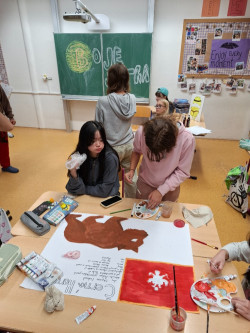 Naše „food sekce“ hrdě servírovala kořeněné maso s bramborami a sladkou baklavu. Tanečníci rozproudili energii choreografií na rytmy z Černé Hory. Kreativní duše se pustily do plakátů a jedna talentovaná spolužačka dokonce namalovala obrazy plné typických černohorských motivů.