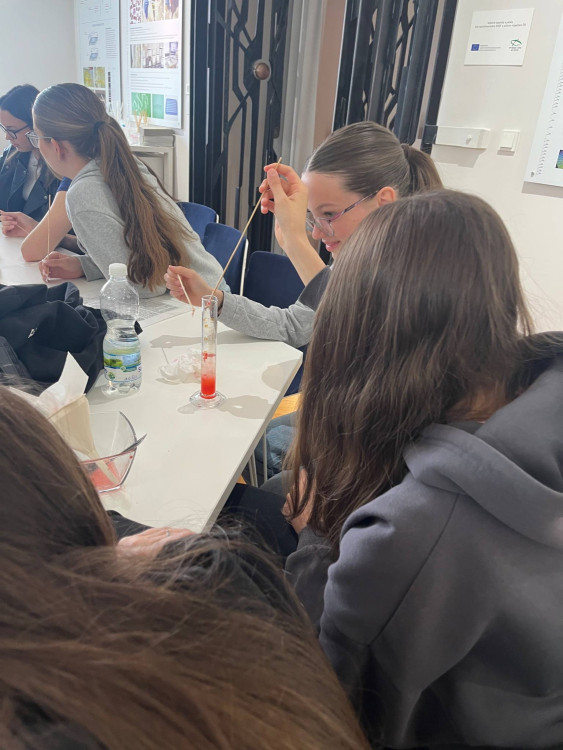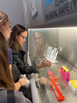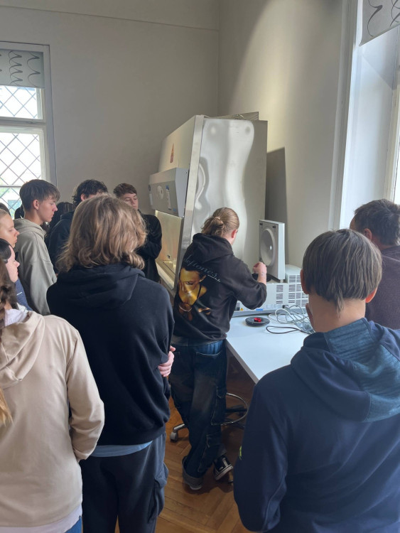 V laboratoři si také osahali práci s moderním vybavením – pipetovali roztoky v laminárním boxu, pozorovali preparáty pod 3D mikroskopem i klasickým mikroskopem a vyzkoušeli si přesnou laboratorní práci, kterou běžně dělají skuteční vědci.