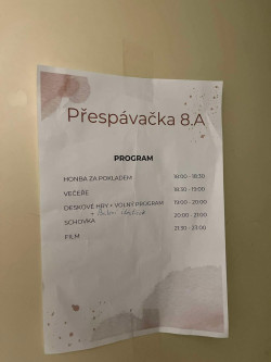Přespávačka byla skvělou příležitostí, jak si třída mohla utužit kolektiv, spolupracovat, vzájemně se lépe poznat a hlavně si užít spoustu zábavy. Všichni odcházeli s úsměvem na tváři a krásnými vzpomínkami na společně strávený čas.